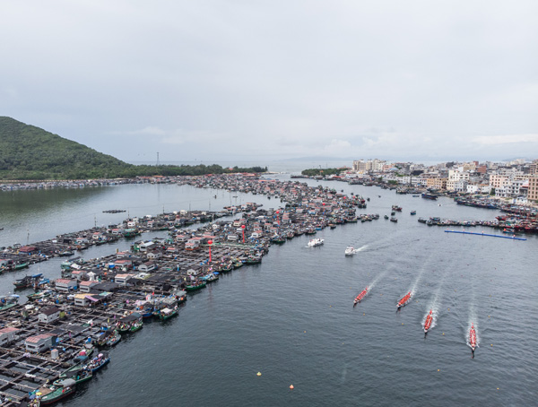 海南三亚陵水疍家文化节上举行的龙舟活动。三亚疍家人是以船为家、寄居江海的族群,他们没有文字,所以疍歌成为探索其心灵世界的窗口。新华社记者 张丽芸 摄